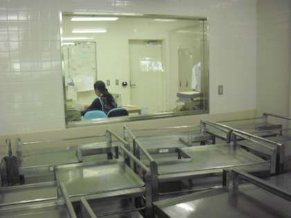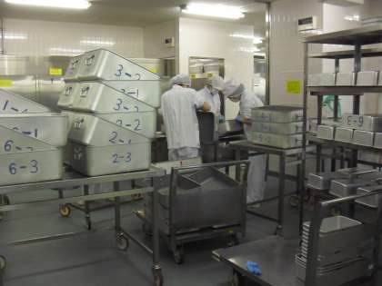 一つ一つの食缶を手作業で丁寧に洗い、拭いていきます。栄養士も調理員との打ち合わせの準備をしたり、食材の発注確認をしたりしています。