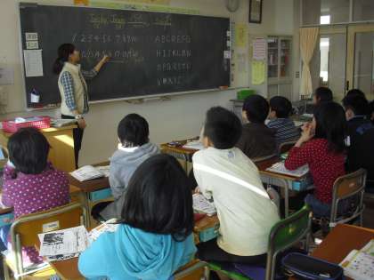 5年生の英語活動の授業の様子です。1から20までの数を英語で数えます。2学期の復習です。英語支援員の発音に続いて子どもたちも声に出して数えます。忘れていませんでした。