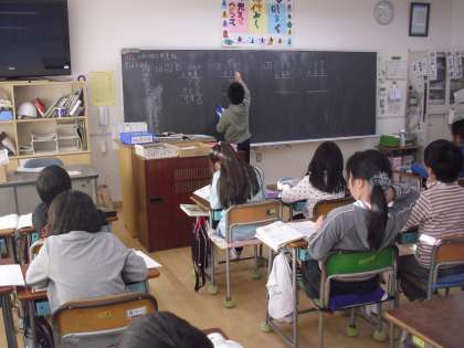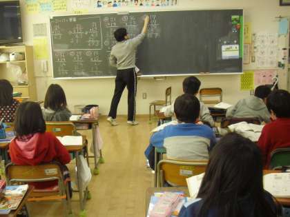 3年生の算数少人数指導の授業の様子です。2ケタ×2ケタのかけ算の筆算について学習しているところです。九九の学習を基本とし、それを活用しながらみんなで問題を解いています。しっかりと身に付けさせていきます。