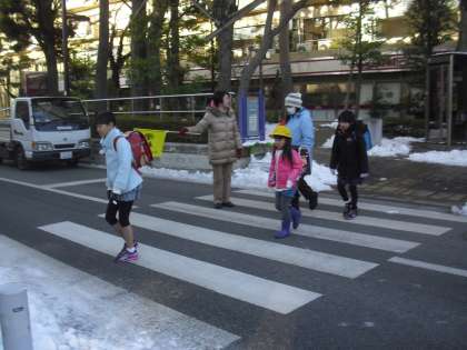 今朝のあいさつキャンペーンの様子です。PTAの旗持ち当番の方々も子どもたちの登校を見守りながらあいさつを交わしています。あいさつポイントには、今日も地域サポーターの方が、子どもたちに声をかけてくださっています。