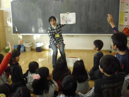 読み聞かせの時間は、絵本や物語の読み聞かせだけでなく、保護者の方々は様々な工夫を取り入れてくださっています。今日は、なぞなぞ等をして子どもたちとのコミュニケーションを楽しんでいるクラスもありました。
