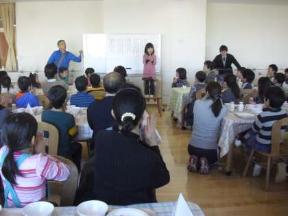 全員でごちそうさまをした後は、「スマイル」という曲を歌いました。子どもたちの元気な歌声に祖父母の方々の表情も笑顔でした。これからも様々な人とのかかわり合いを通して「ふれあい力」を高めていきます。