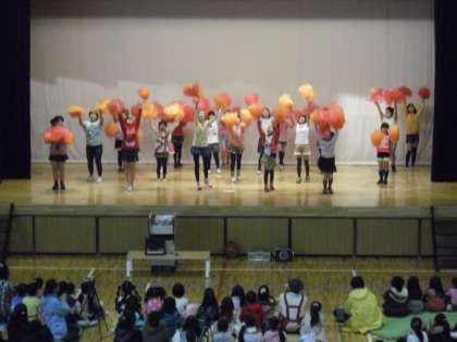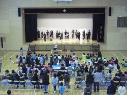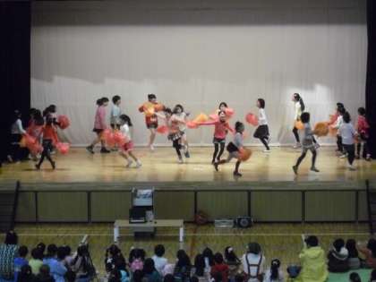 新年親子お楽しみ会の様子です。体育館でのオープニングは、芦花小学校ダンスクラブによる発表です。これまでの練習の成果を発揮することができ、会場を大いに盛り上げてくれました。