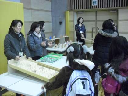 体育館では、PTA本部役員もお店を出しました。射的コーナーなどのゲームのお店です。人気があり、子どもたちが並んで順番を待っていました。