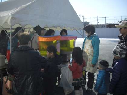 PTAバレーボール部のわたがし屋さんです。お店が始まるとすぐに列ができました。子どもたちも楽しみにしていたようです。