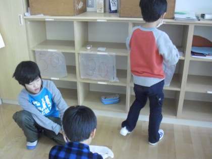 2年生の生活科の授業の様子です。芦花フェスタに向けてお店の準備の続きに取り組んでいるところです。輪投げ屋さん、的当て屋さんはお店の雰囲気が伝わってきます。風力で動く車を作っているお店もあります。