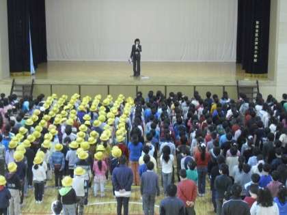 今朝の全校朝会の様子です。今回は渡部校長が「いじめ」について話をしました。「いじめ」はどんなことがあっても許されないことであること、いじめられた辛さについての話でした。「そっと声をかけてくれた友達がいたから立ち直れた」というある子どもの話から、子どもたちにもそういうことができるようになってほしいと話していました。