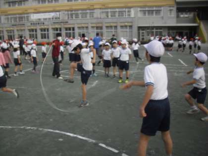 今朝の体育朝会の様子です。今回は、長なわ跳びの練習会を行いました。この一年間で低学年の子どもたちもリズミカルに跳ぶことができるようになりました。積み上げてきた練習の成果です。体力の向上ももちろんですが、みんなで跳ぶことでクラスの一体感もはぐくまれます。