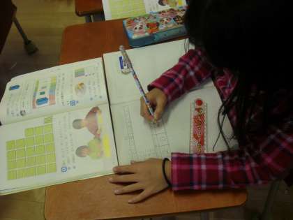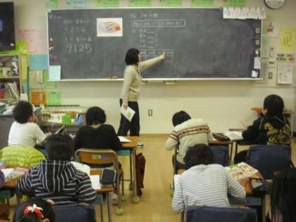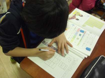 2年生の算数の授業の様子です。「10000までの数」を学習しているところです。子どもたちはこれまでに学習して身に付けた知識を活用して、新しい知識を身に付けます。1000のかたまり、100のかたまり、10のかたまり。4けたの数字の表し方と読み方をノートに整理しました。