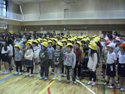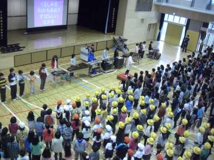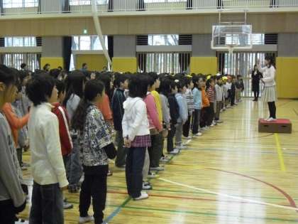 お互いが歌うメロディを聴き合った後に、合わせて歌いました。バラードなので、体を揺らしながら気持ちよさそうに歌っている子どももいました。全員が集い、一つの歌を歌うことで子どもたちの心がつながります。音楽表現するすばらしさを味わうことができました。