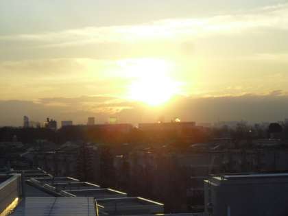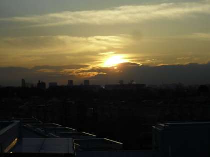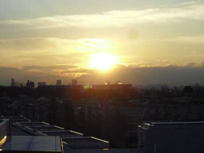 屋上から見た今朝の日の出の様子です。厚い雲の向こうから朝日が昇ってきました。日の出の時刻も1月と比べると早くなりました。今日も子どもたちが元気に学校生活を送ることを願っています。