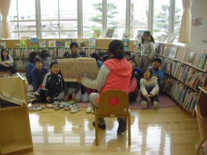 3年生の図書の時間の様子です。前半は自分の好きな本に親しみ、後半の時間は、担任が読み聞かせをしていました。「世界の人びと」という本です。国も言葉も顔も形が違ってもみんな同じ人間なのです。子どもたちに互いに認め合う大切さを伝えていました。