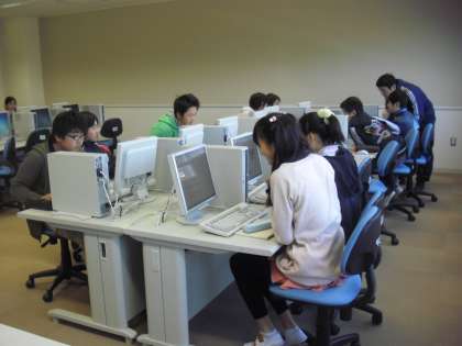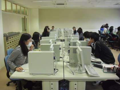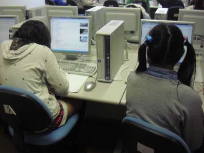 6年生の理科の授業の様子です。パソコンを使って環境問題について調べているところです。この時間は、小学校のパソコン室も使用しているため、6年生は中学校のパソコン室で授業をしています。このような活用もできるところが本校のよさでもあります。