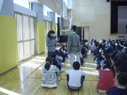 6年生の好きな教科や読書等についての問題が続きます。正解を発表した後は、6年生にインタビューして問題に関係する話をしてもらいました。改めて6年生のよさにふれる機会となりました。