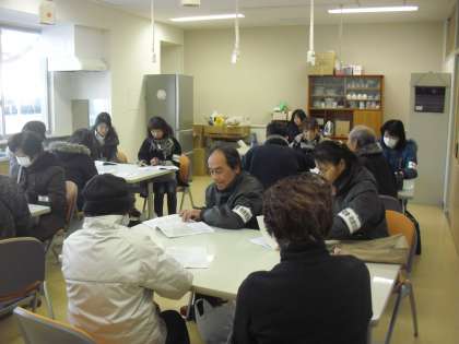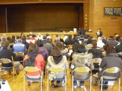 小中合同避難所運営訓練の様子です。これまでは小中別々に行っていた訓練ですが、施設一体型校舎となり、災害時の避難所も合同で運営することになりました。地域の方、たくさんのPTAの方々が参加して研修会を行いました。