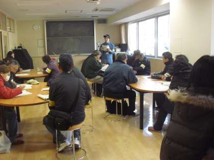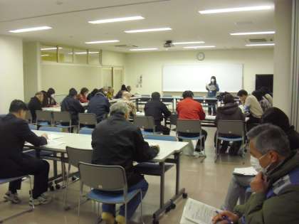 全体会の後、校舎内の確認を行い、総務・情報、避難所、給食・物資、救護・衛生の4つの班に分かれて研修を行いました。災害が発生したあとの動きや、それぞれの班の役割と作業の手順について、資料をもとに話し合いました。