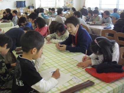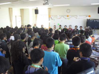 給食終了後、歌とリコーダーの演奏を聴いていただきました。「ふじ山」を子どもたちが歌い出すと地域の方々もいっしょになって歌ってくださいました。心がが温かくなるような瞬間でした。活動を通して、たくさんのふれあいをはぐくむことができました。