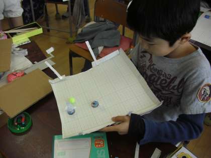 3年生の理科の授業の様子です。磁石の性質を利用したおもちゃづくりに取り組んでいるところです。メリーゴーランド、サッカーゲーム、つりゲーム等、子どもたちのアイデアを生かした楽しそうなおもちゃができあがりそうです。子どもたちの創造性が光ります。