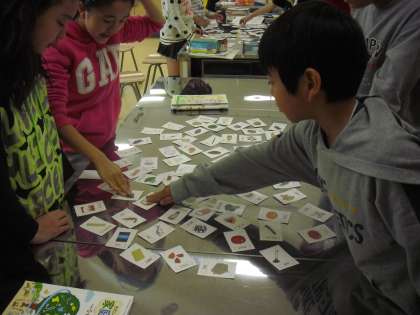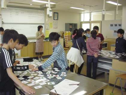 5年生の家庭科の授業の様子です。栄養素についてカルタを使って、学んでいるところです。五大栄養素の仲間分けや味付けに必要な材料等、楽しみながら確認しました。栄養素について関心を高めることで、食生活の自己管理能力を養います。