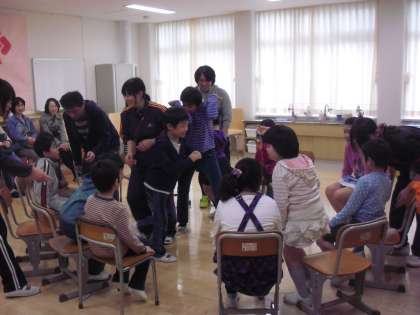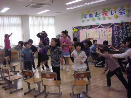 ひかり学級の「卒業生お祝い会」の様子です。ひかり学級の卒業生2名と楽しい一時を過ごします。ダンスをしたり、歌を歌ったり、ゲームをしたり、卒業生とひかりの仲間たちの楽しそうな声が聞こえてきます。卒業まであとわずかです。