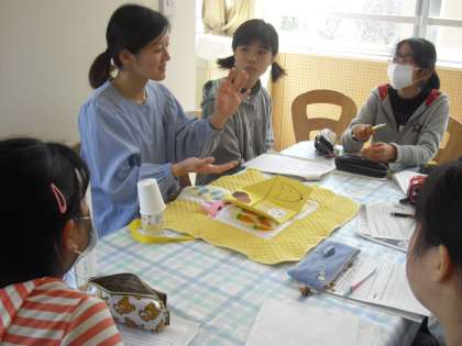 保育士の高嶌志直子さん。1才児は言葉で気持ちをうまく伝えることができないので、つい手が出てしまいますが、「これが使いたかったんだね」と言葉にできない分、気持ちをくみとってあげることが大切です。毎日、子どもたちの成長を感じることが喜びであるとおっしゃっていました。子どもたちには「失敗しても大丈夫」というメッセージを送ってくださいました。