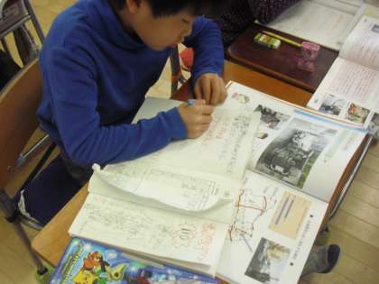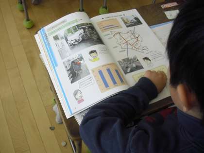 3年生の社会の授業の様子です。安全なくらしについって学習しているところです。警察の働きについて考えています。交通事故の発生の原因や事故が起こりやすい場所について資料のグラフから読み取っています。資料活用力を身に付けさせます。