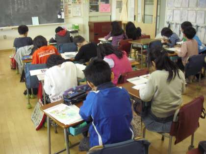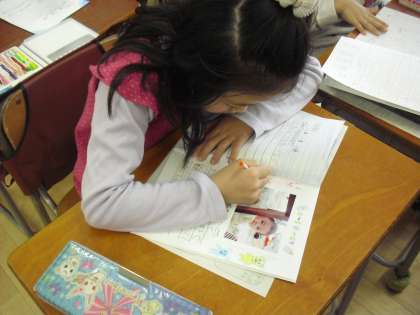 2年生の生活科の授業の様子です。自分の成長の記録史「ひろがれ!わたしのものがたり」を作成しているところです。お家での家族のインタビューや自分の覚えていることを記事にしています。みんなの幼いころの写真が実にかわいらしいです。