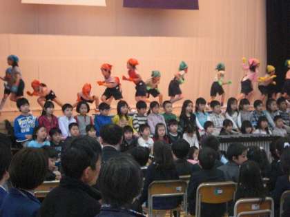 運動会で発表したリズムダンス「ひょっこりひょうたん島」。