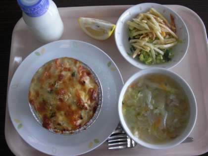 「今日のドリア、美味しかったよ」と中学の校長先生に言っていただきました。