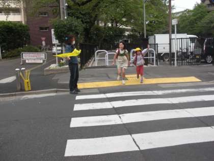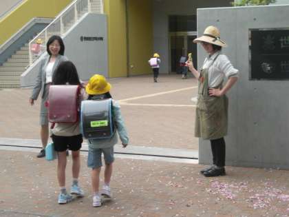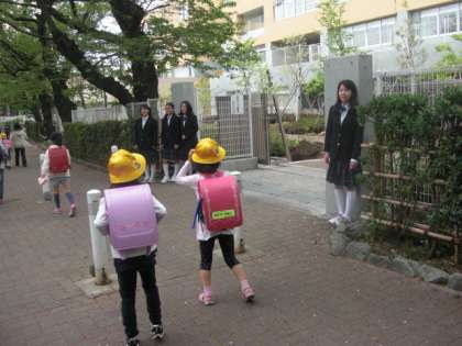 中学校側の門では、中学生のお兄さん、お姉さんが
