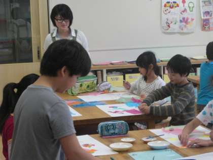5年生の図画工作では、「春のイメージで」を、様々な色の薄紙を
