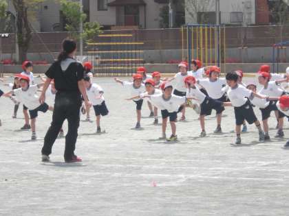 それに合わせて、子どもたちが同じポーズに挑戦。