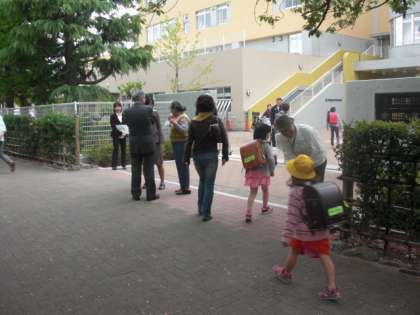 早朝から、芦花小学校、芦花中学校の児童・生徒の登校の見守りと
