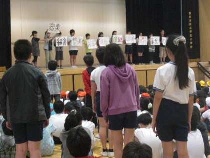 全校児童に伝えていました。