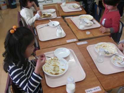 1年生は「学校の給食は美味しいよ」と言ってくれます。