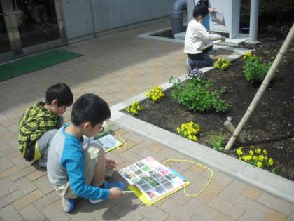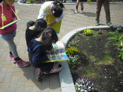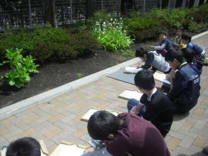 6年生は図工のスケッチを、そして1年生は生活科の春の草花さがしをしていました。