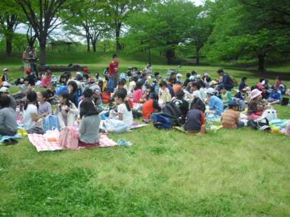 集合場所に戻って、班ごとにお弁当タイム・・・