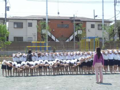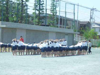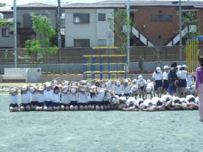 校庭では、5年生が組体操の「波」の練習をしていました。