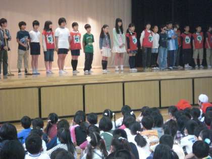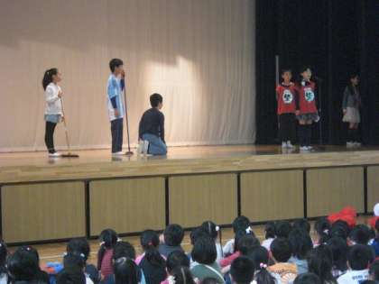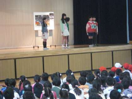 金曜日の朝、児童集会は、整美委員会の発表でした。