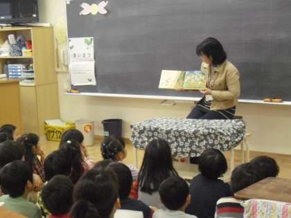 朝の時間に保護者の方が読み聞かせをしてくださっていました。
