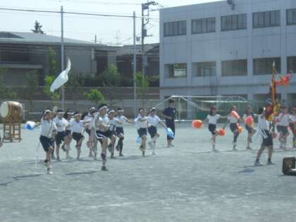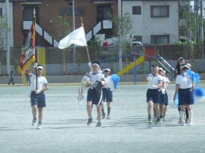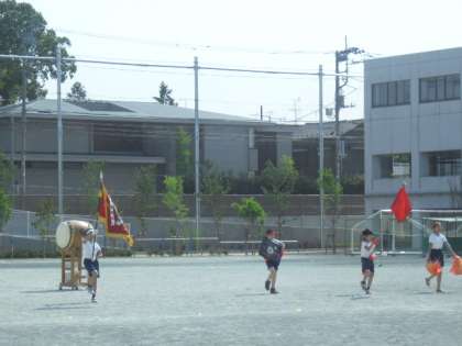 運動会の始めは元気な入場行進、そして開会式があります。今日も係児童は開会式で返還する優勝旗、優勝杯、淳優勝杯をもって元気よく行進しながら入場の練習を重ねていました。今年は赤、白どちらが優勝するのでしょうか・・・勝ち負けだけにこだわらず友達の頑張る姿に互いに精一杯声援(エール)を送ってほしいです。