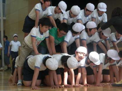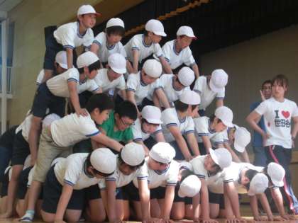5,6年生男子109名でピラミッド2基