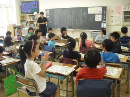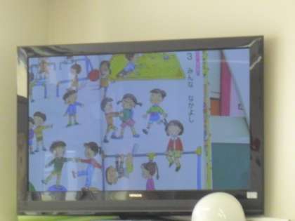 道徳の時間です。50インチのテレビの大画面に使用している教材を映して、気付きをそれぞれ発表しています。子どもたちは発表者に体を向けて、聞き合いをしていました。先生はそれぞれの発表された意見にマークを付け分類整理しながら板書しています。学校でも子どもたちにとって分かりやすい、学び合いになる授業をめざして具体的な手立てを考え、日々指導にあたっています。土曜日にはぜひいらして授業もご参観ください。