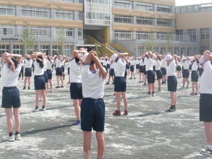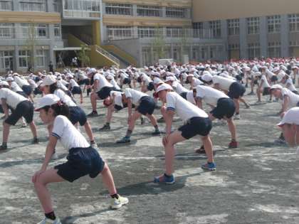 今朝の体育朝会で、初お目見え。全員で行いました。