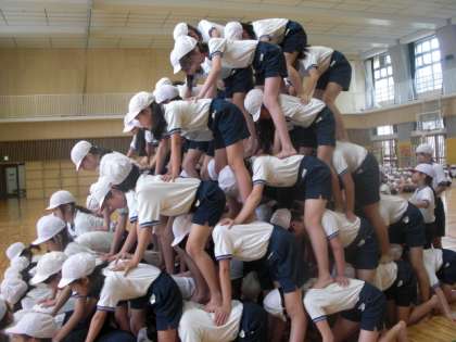 このピラミッドを支えているのは、写真には写らない内側の子どもたち。