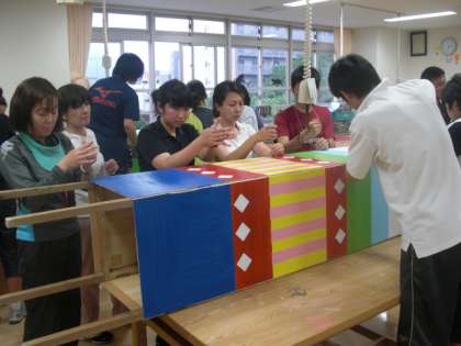 昨日は、みんなで図工室に集まり、入退場門作り。