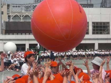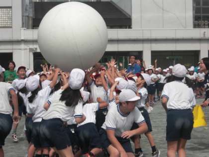 大玉運びの6年生代表は、入念に作戦を練り。(写真:上)