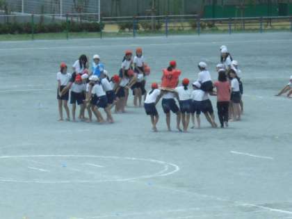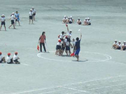 団体競技のの練習にも熱が入ってきました。6年生は騎馬戦の練習の真っ只中・・・