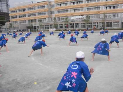 すると、5、6年生も、ソーランの曲に合わせて踊り始めました。