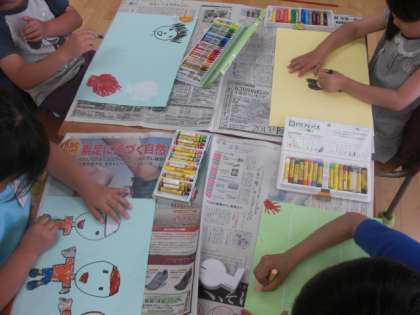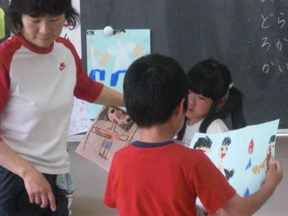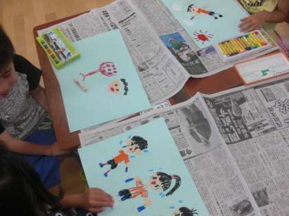 1年生が図工の時間に運動会の様子を思い出して絵に描いていました。